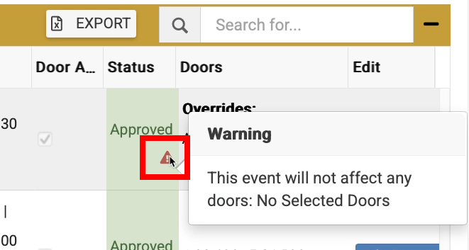 In the Edit Door Access column, hovering over the red triangle you will see the following message: