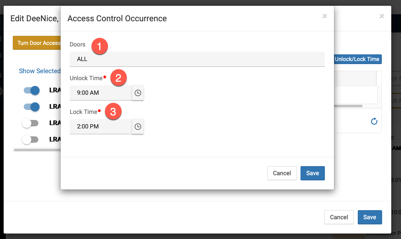 - View the Timeframe for Doors to unlock/lock