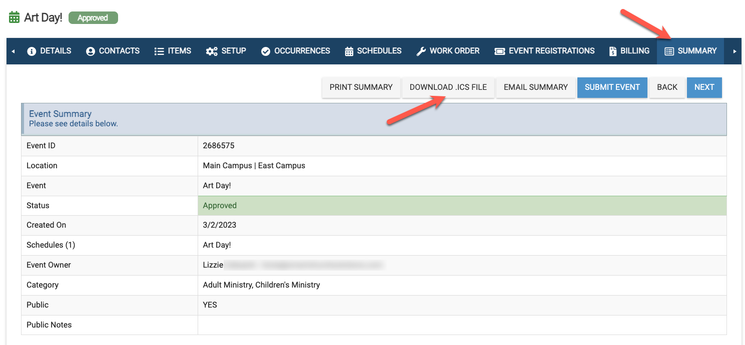 - First, open the desired event and go to the Summary tab, as shown in the example below.