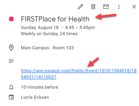- Go back to your Google calendar and you should see the event.