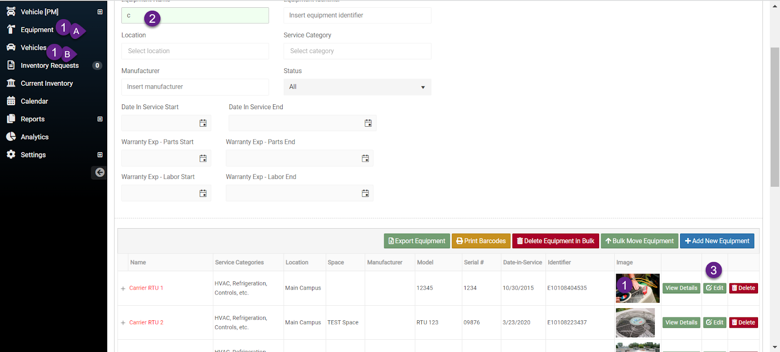 Go to the left navigation bar and click Equipment (or Vehicles if you have Vehicle Pro)
