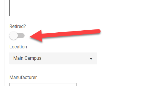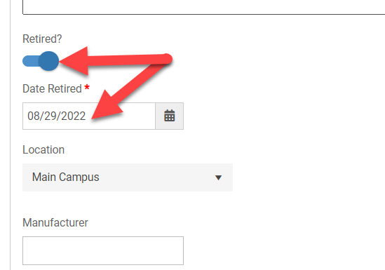 After toggling on Retired?, enter the Date you want to retire this Equipment (or Vehicle)