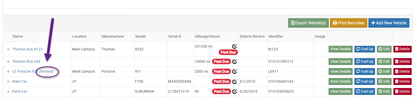 The same is true for retired vehicles. For those that are on a subscription that includes Vehicle Pro, you can enter in vehicles as separate from your equipment, You will also have access to fields that are vehicle-specific for better tracking purposes. Learn more: Vehicle Pro Feature Overview