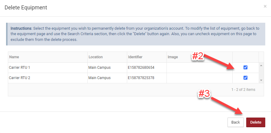 1. Select the RED Delete Equipment in Bulk button show above