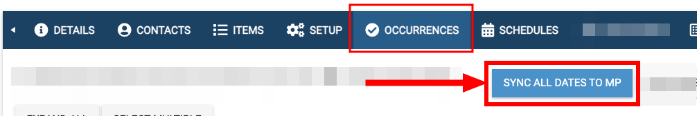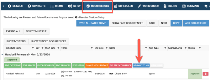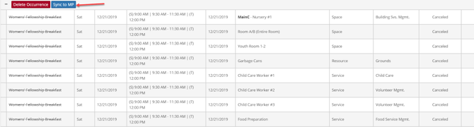You will then be able to view the canceled occurrence and will have the option to Sync to MP.
