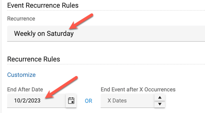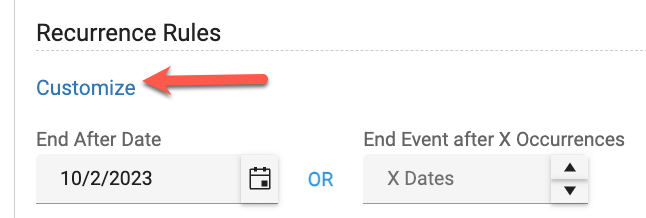 Whether your choice is Daily, Weekly, Monthly or Annually, you can click Customize to continue to make unique changes to the Recurrence Rules.