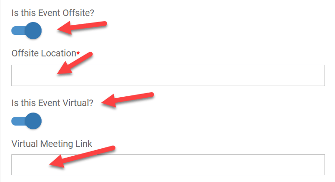 If you choose to have an Offsite event, then you'll be prompted to add the Offsite Location.