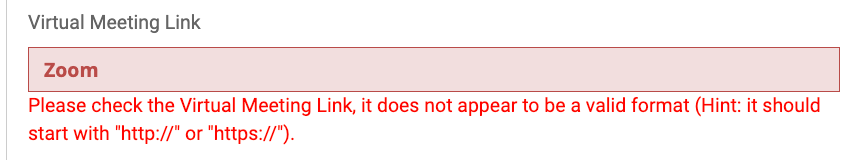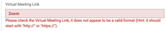 If you choose to make the event a virtual event, you'll be prompted to add the Virtual Meeting Link; however, it is not required.