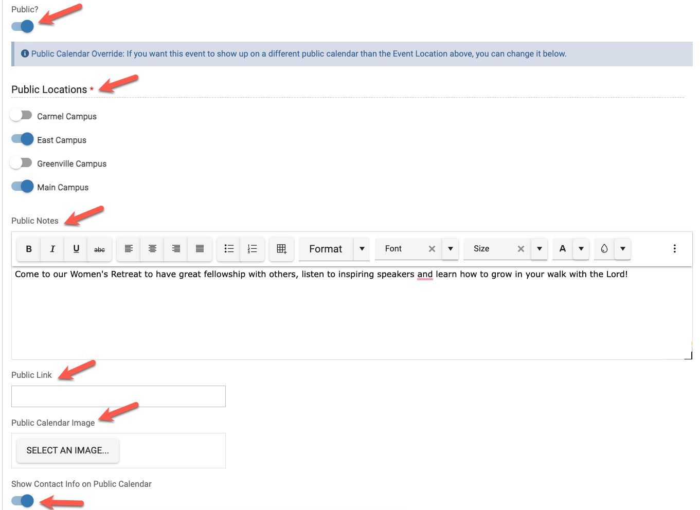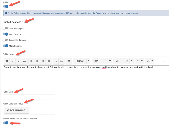 Note: Only events that have been marked public and are in an approved status will show on the public calendar.