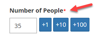 - You can easily add increments of 1, 10, and 100's to your number of people by selecting one or more of the "+" blue buttons.