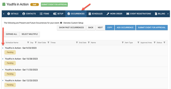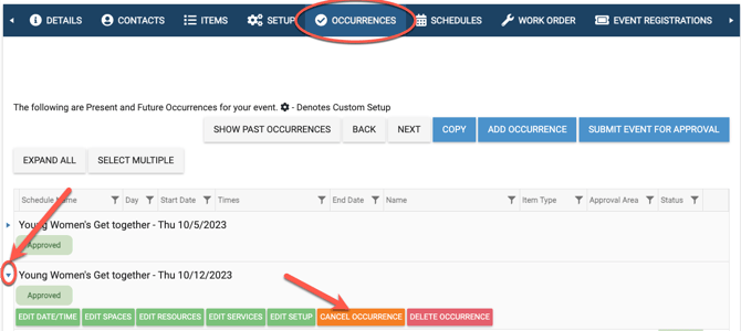 - Read this knowledge base article to learn the difference between an Occurrence and a Schedule on an event: When to Add Occurrence vs. New Schedule?