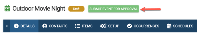 - If you are ready to submit your event for approval, simply click the "Submit Event For Approval" next to the event title.