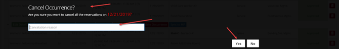 A new window will open where you can give a cancelation reason and select Yes to cancel.