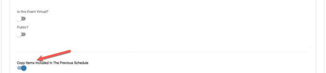 - When adding a schedule, you can choose to have the new schedule copy the items (spaces, resources and services) on the original event.