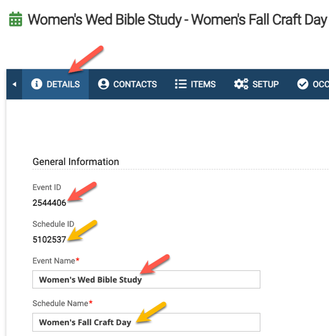 You will also be able to identify what Schedule you are on by looking at the Details tab of the event. The Schedule ID is listed right below the Event ID (see below), as well as the schedule name being listed below the event name.