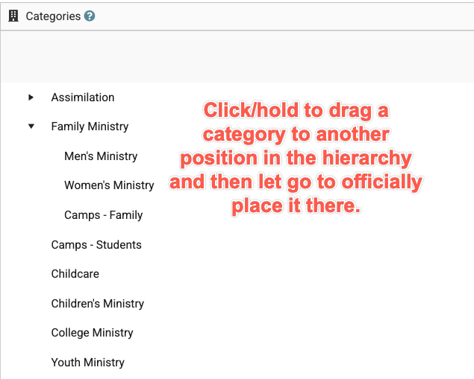. . .Or to be a Sub-Category under another Event Category, click and drag, then drop on top of another Event Category: