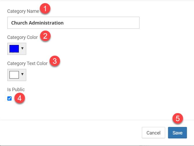 - Enter a Category Name (like "Church Administration" or "Student Ministry")