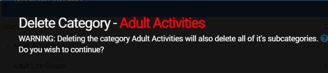 What if you have a ministry or department that is under another ministry or department? With Sub-Categories, you can create a parent Event Category (like Adult Ministry) that has Sub-Categories (like Men's Ministry, Women's Ministry, etc.).