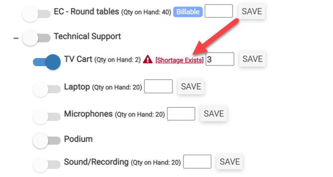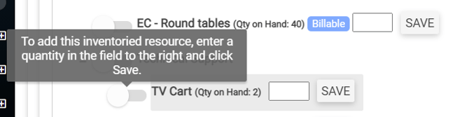 3. Just enter the QTY that you need for your event and click Save to save the resource and QTY.