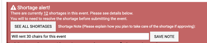 2. There is an option to enter a Shortage Note to explain how you will take care of the shortage.
