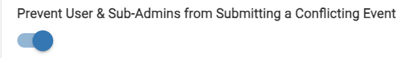 Admins should be aware that this setting under Settings > Advanced > General > Conflicts does not prevent users and sub-admins from submitting and event with overbooked resources. The user submitting the event with overbooked resources should be the one to plan to compensate for the shortage.