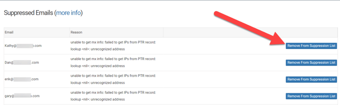 , you will be shown the Reason the email was suppressed. - (What does this mean?) provides a more in-depth explanation of Suppressed Emails