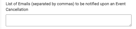 Although individual eSPACE users can enable a notification in their own account to receive a notification if their own event is canceled, admins can also add any email they would like to receive an email for any canceled event. This could include eSPACE users and/or non-eSPACE users and will apply to all events.
