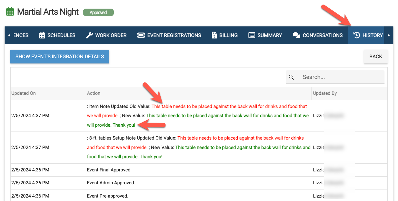 The item note modification will also be reflected in the event history.