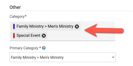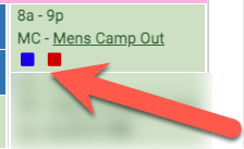 Since the "Adult Life Group" was chosen as the primary category in the example above, its category color will be displayed before any others chosen on the event when viewing the event on the internal calendar views.