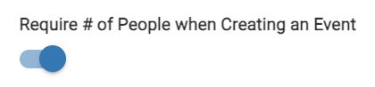 - For both internal and public Event Requests, you can make "# of People" a required field. Admins can turn this setting on by going to Settings > Advanced> General > Event Creation, then select "Require # of People when Creating an Event" as shown below and then SAVE.