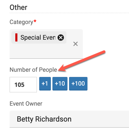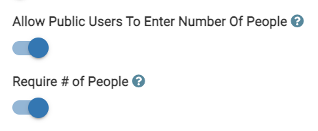 - This setting can also be selected within the Event Request form setup by going to Settings > Advanced > Event Request Forms, then within a specific form setup, select "Allow Public Users to Enter Number of People" and "Require # of People" and SAVE.