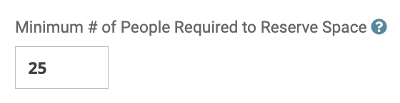 - At the SPACE level, you can set a "minimum" number of people required in order to reserve the space. You can set it by editing any desired SPACE by going to Settings > Basic > Spaces, hovering over the space game you want to edit, clicking the 3 dots and then choosing "Edit Space".