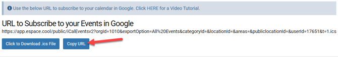 - You will have multiple filter options to choose from before copying the URL and pasting it into your Google, Outlook, or Apple Calendar. The .ical (URL) will change based on the settings/filters you select on the page.