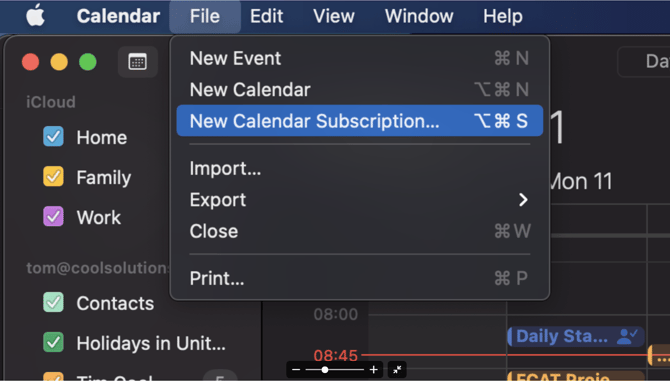 - 1. In Apple Calendar on a Mac, you can use the “New Calendar Subscription…” option under the File menu as shown below. If you have your calendar syncing with your iCloud account, subscriptions set up on your Mac should also sync to your iPhone.