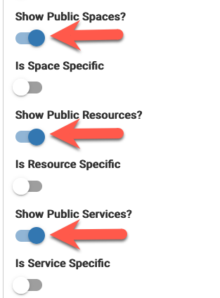 - A. Make sure the right spaces, resources, and services are marked public (each one can be marked publically when you edit them under Settings > Basic > Spaces/Resources/Services).