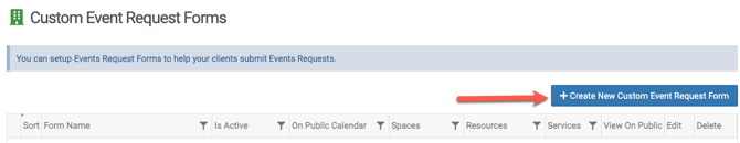 From here, click "Create New Custom Event Request Form" to create a new Event Request form.