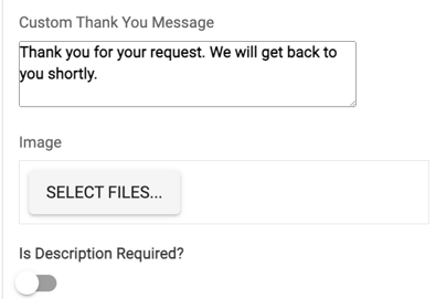 - You can also add a custom thank you message that users receive when submitting an event request, as well as a customized image for the form, and decide if a description for events is always required.