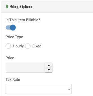 and then set a fixed or hourly rate under the "Billing Option". - The spaces/resources/services that are set to be billable will be the only ones available to be added on the Event Request Form if the form is made billable.