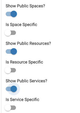 - In order to limit the form to certain spaces, resources and/or services, you must enable "Show Public Spaces/Resouces/Services".