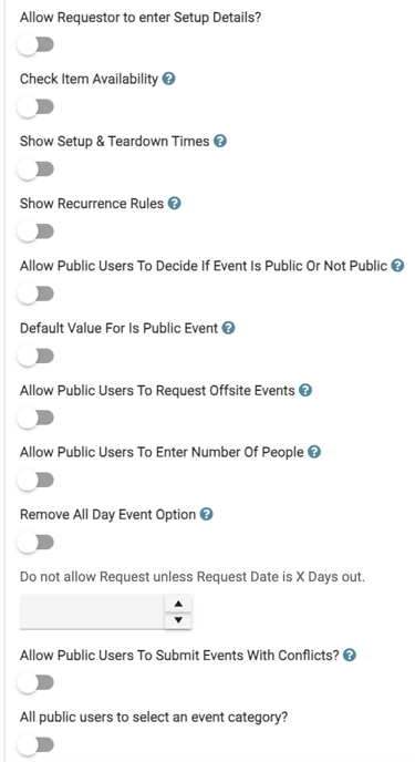 10. Select any other desired settings so that they are displayed within the event form on your Public Calendar.