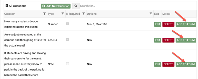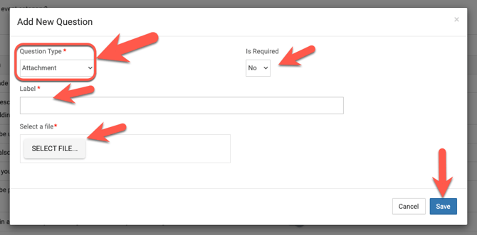 - Custom Questions/Fields: Admins can add these to the Event Request Form including a field called "Attachment" and another one called "Upload".