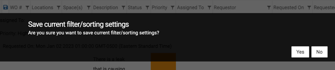 If you click the save icon, you will see a pop-up message asking you to double-verify the filter options you have chosen.