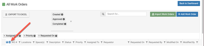 - Click the column header of any column to sort all the work orders by that column header
