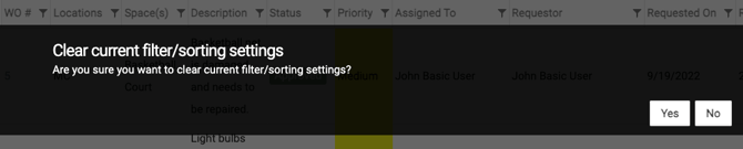 After you click "Yes", the All Work Orders page will return to the original display of items.