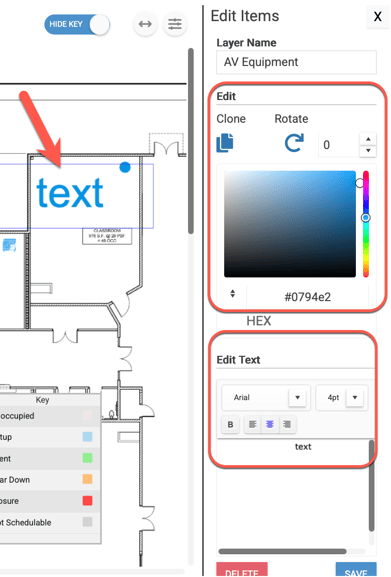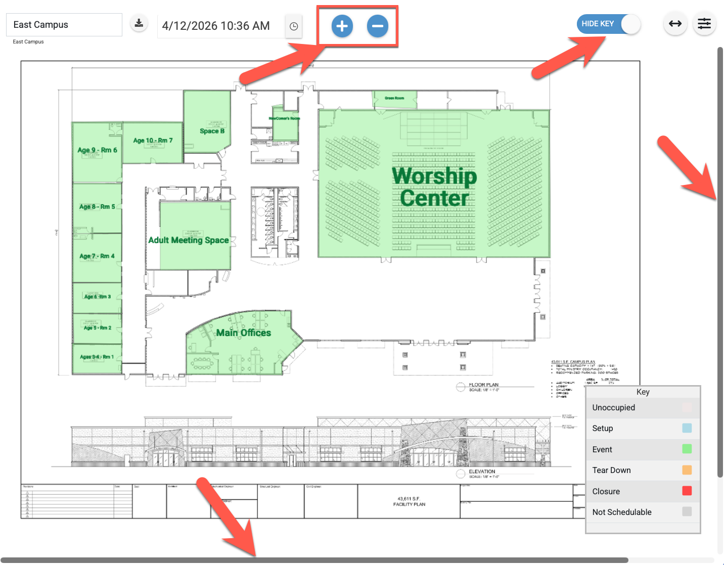 - Users can click and drag the Key to any spot on the Floor Plan or toggle "Hide Key".
