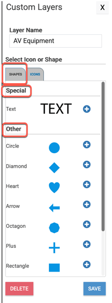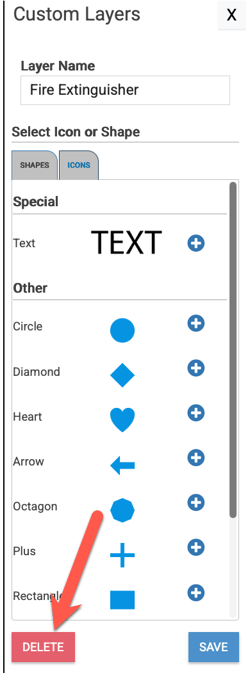 7. Continue to select the same or different icons for the Custom Layer you are working on until you have added all the custom text, generic shapes, and default equipment icons for that custom layer that you need.