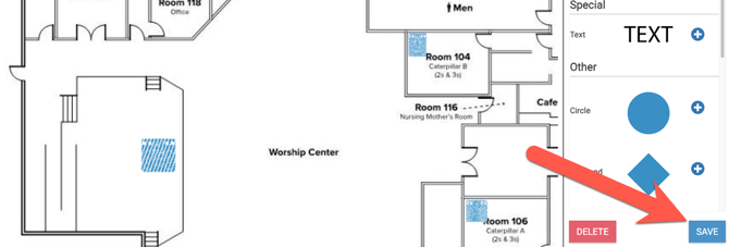 Click "Save" before adding or editing the next shape, text, or icon.