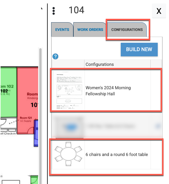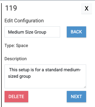 - Once created, these will appear on the Configuration tab of a space after you select one on Floor Plan. Example below.