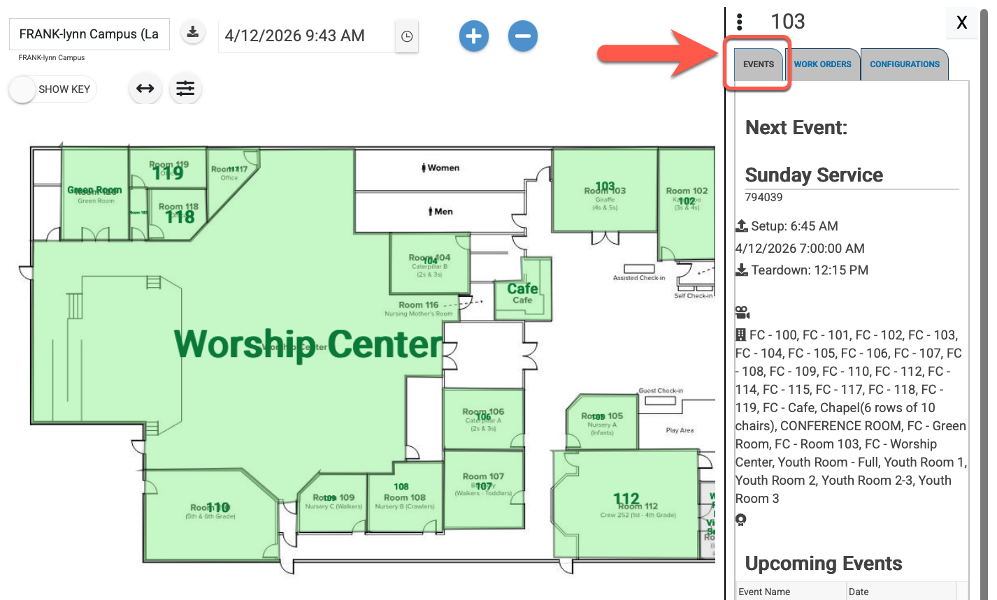 Floor Plan | Viewing Spaces, Event Details, & Creating Events & Work Orders