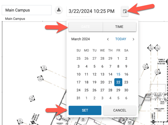 - To change the date and time, click the calendar icon, select a date, and then click "Set".